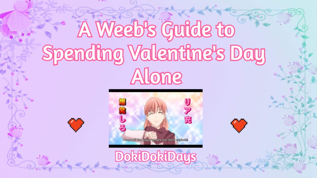 It’s Valentine’s Day again, and for those who are in relationships. Great. But for the rest of us who remain single, Valentine’s Day can be anything from just your average day to a day of melancholy for being single. But y’know what? Why can’t you make your own heart go DokiDoki and treat yourself? I’m about to steer us into the cringe. These are my tips for how to spend a weeby Valentine’s Day.
