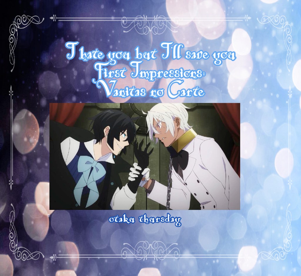 Hello and welcome back to Otaku Thursday. I would like to begin by thanking Star for the name of this post. I have so many feeling about Vanitas that I often find it hard to talk about and make decisions about things regarding the anime. Now, when I say I have a lot of feelings, I mean I have a lot of GOOD feelings. Vanitas no Carte has been one of my favorite manga for a few years now. I found it pretty much when Pandora Hearts ended, being the next manga by Jun Mochizuki, and I always liked it a lot better. Like, A LOT better. Whereas Pandora Hearts was good, the plot wasn’t really amazing until the latter half, but Vanitas? It always seemed more straightforward (which we’ll get into in a second) and just had more interesting narrative elements in my opinion. So, yeah. I have a lot of good feelings about Vanitas, and I’m just so incredibly grateful that it got an anime. But we’re still going to break this down with a first impressions of the anime, so without further praise, let’s get into it!