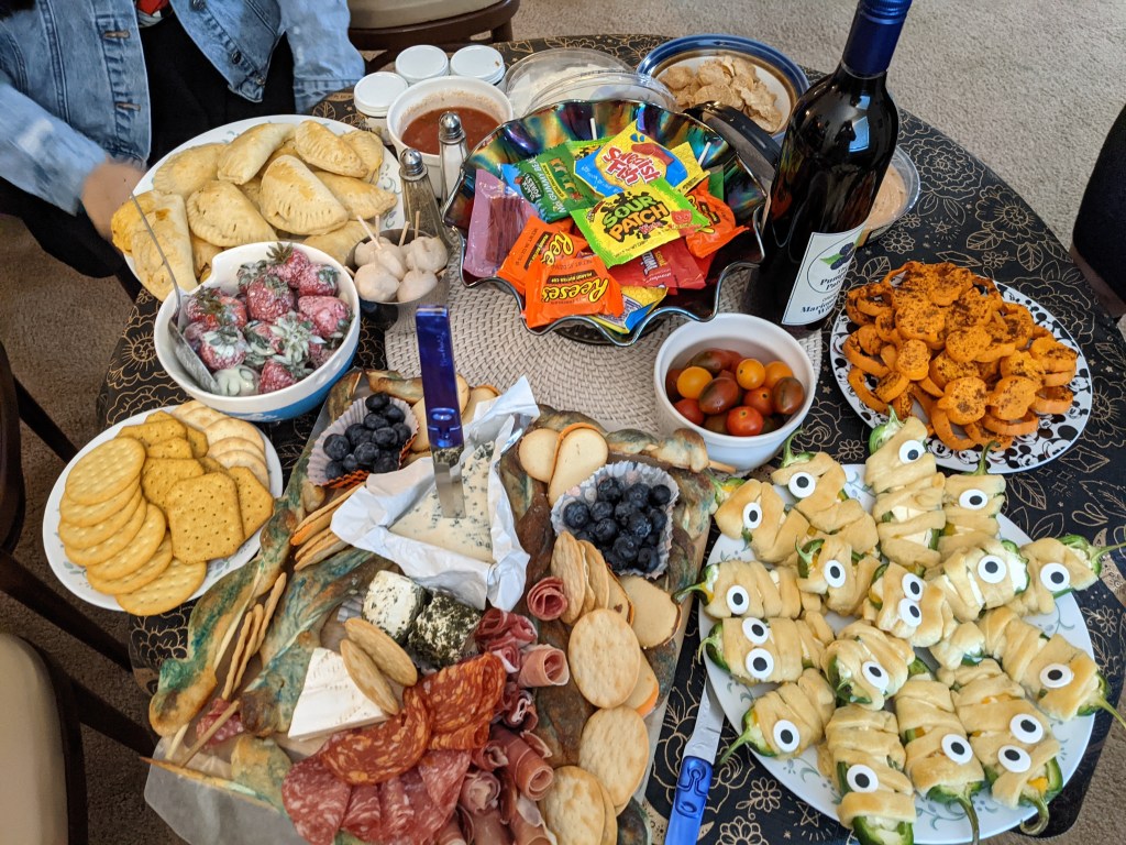Probably the hardest thing to decide on and the most time dedicated to is obviously the menu. Once you know who is coming, or who you are inviting, you can build a fun menu based on them. We ended up making a plethora of treats including empanads, mummy jalapeno poppers, breadstick snakes, pumpkin curry, and a vast array of other appetizers and treats that looked spooky. Needless to say, we don’t have a ton of letftovers.