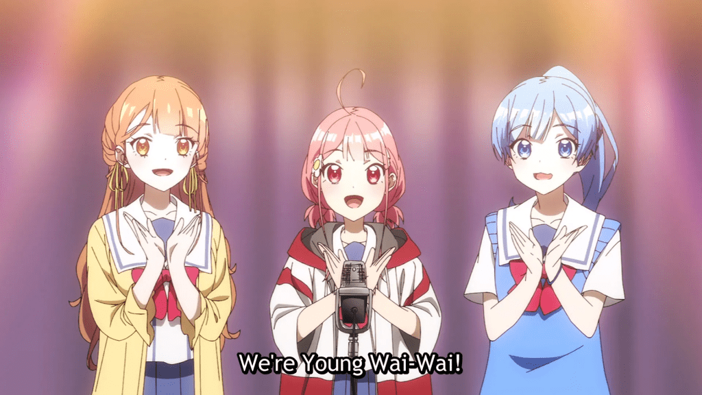 Music-wise, it’s catchy and fun to watch. It’s also really colorful and bright. Reminds me a lot of other comedy anime but it’s a majority girl cast without being degen trash wooooo~