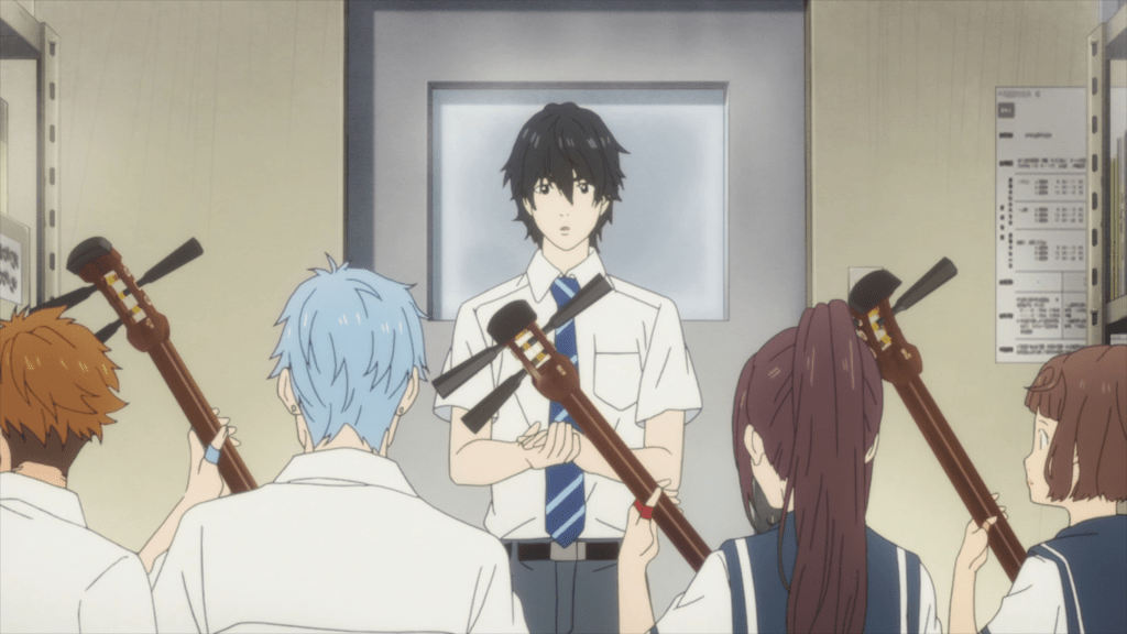 Is mainly a music anime about a teen who is trying to find his own sound amongst a family of musicians. He leaves his home in the country in search of himself and ends up at a high school on a shamisen team becoming their mentor and inspiration. Like Blue Period, it also is an in-depth study, but instead of art it’s music composition. Shamisen is all about feeling the progression of notes harmonizing and being in sync with one another to transport the audience to a moment in time.