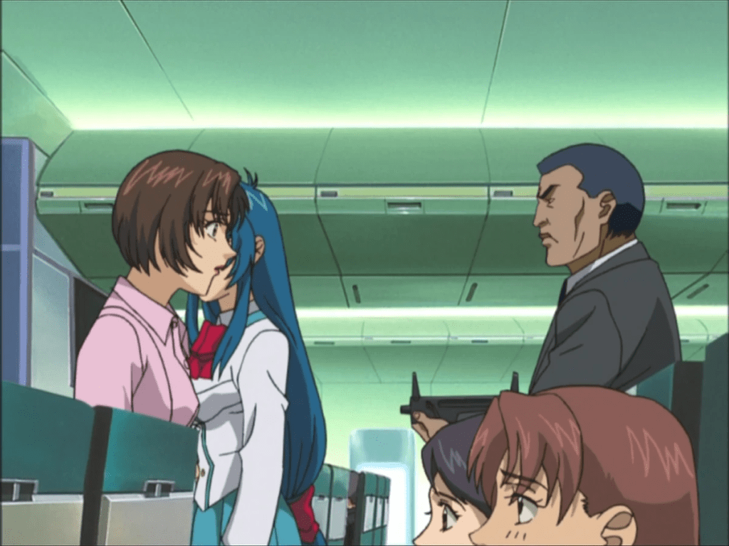 In episode 4, the class board’s a plane to take them to Okinawa only to get hijacked and Kaname to be taken hostage. This leaves Sousuke to save her from experimentation trials. This episode really paints a strong picture about the kind of danger that Kaname is in.