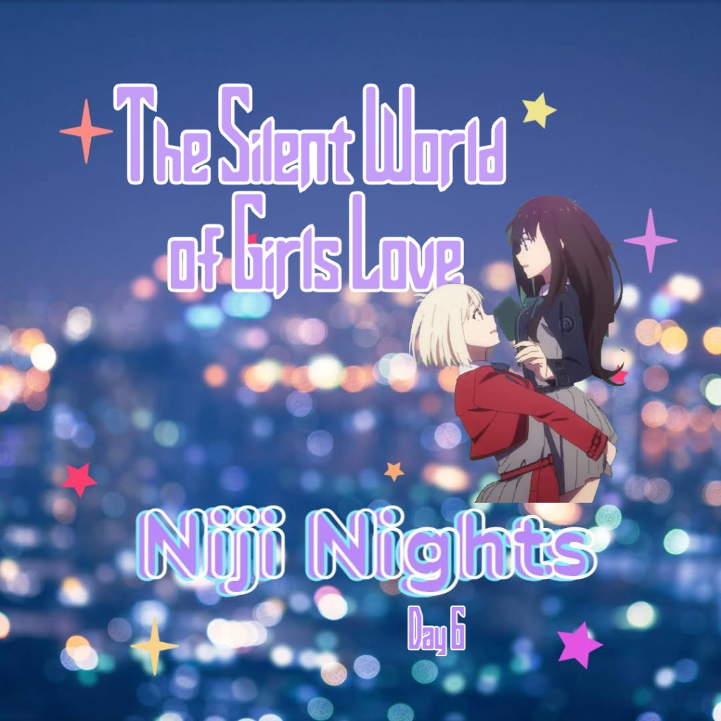 Here we are, on day six of Niji Nights. We have done a lot of talking about boys love so far and only briefly mentioned girls love. Star and I tend to feel like in comparison to BL, GL often doesn’t get the same love and appreciation these days. There was a period in anime where BL and BL coded shows were norm, but during those years it felt GL was at a standstill. However, in recent years, Star and I have been delighted to see more GL and more GL coded anime releasing each season. But of course, the more we watch, the more we now see the tropes, trends, and similarities in the world of GL. While BL tends to have huge fanbases, the world of GL is quieter–or has been. And the stories themselves also feel tamer–quieter and very drama filled.