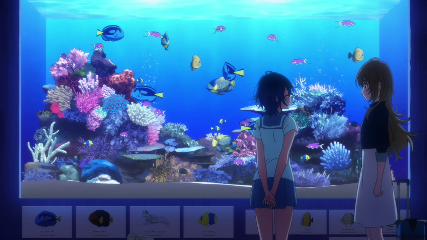You know, another trend I see in GL is aquarium dates and the theme of water. Star mentioned 5 GL earlier in this Niji Nights and more than one of them had an aquarium date–even popular Lycoris Recoil had an aquarium date. But y’know, Star begged the question: why aquariums and water? While I am no expert and cannot say for sure, I can only imagine. Much like BL has lots of birds and wing symbolism that allude to a sense of freedom, I suspect that the water symbolism has to do with falling deep into something. Girls love stories are often quite dramatic and deep in a way that I feel BL struggles to be on mass. Not to say BL ISN’T deep–no it often is. But GL we see the romantic pairings fall for each other on a very emotional level VERY quickly. Whether it’s Witch of Mercury where the two main characters seem to get deeply entangled but also seem stuck within their emotions at the moment. The same happens in Aquatope, and even in Lycoris Recoil. So yeah, my thoughts are that if water had something that it inherently represented, it’d be the ability to fall deep into something.
