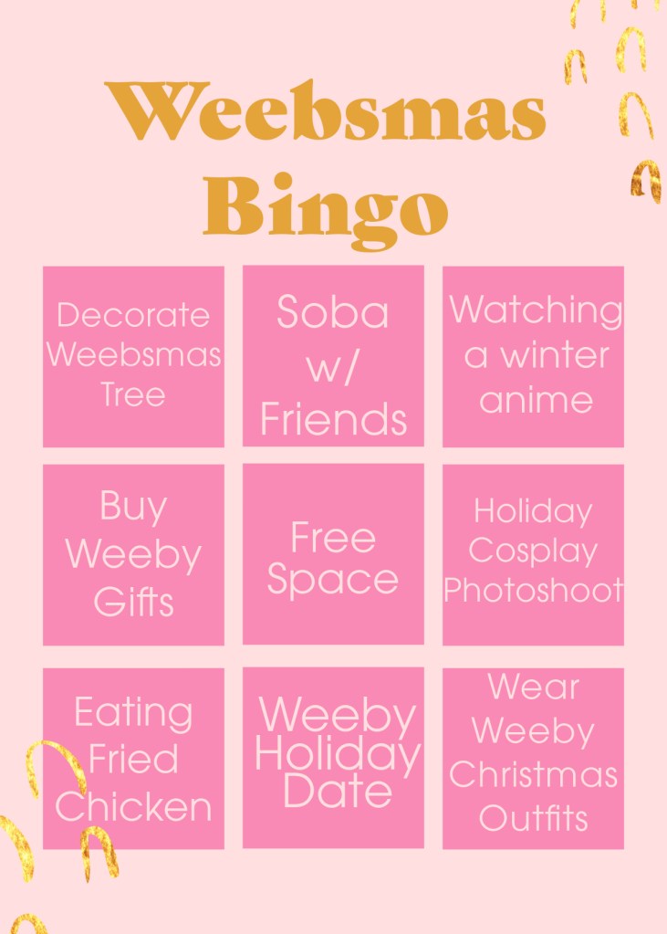 Hey, happy festivus everyone! We thought we’d do a Winter Holiday version of our Bingo this year! Let’s just see how many we can do this year~