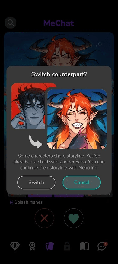 Until you hit the pay wall of course. Pay walls, are only for popular characters. The ones that most people swipe on and the ones that seem endless honestly. The plots from what I could tell. Unless this was a longtime player there was no way that the player would reach the end of the story unless you paid for more gems to continue. But there was evidence that the player could catch up with the writer (yes there are REAL people writing these stories) by viewing in the character’s profile how many more pics the player could reveal. The app also cares about what their readers want so if the player chose to ghost a character, you are asked why with options like “didn’t like the art”, “didn’t like the story”, “other”, and “no particular reason”. Of course I stuck it through for the sake of the blog but I did remove characters that weren’t mythical creatures.